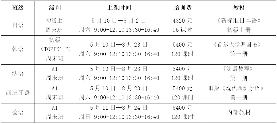 ☆老生重读优惠:五年内小语种老生重读同一语种、同一级别,只需半价;五年内外教口语老生重读同级别享受七折优惠(不叠加早鸟、转发、团报优惠)。