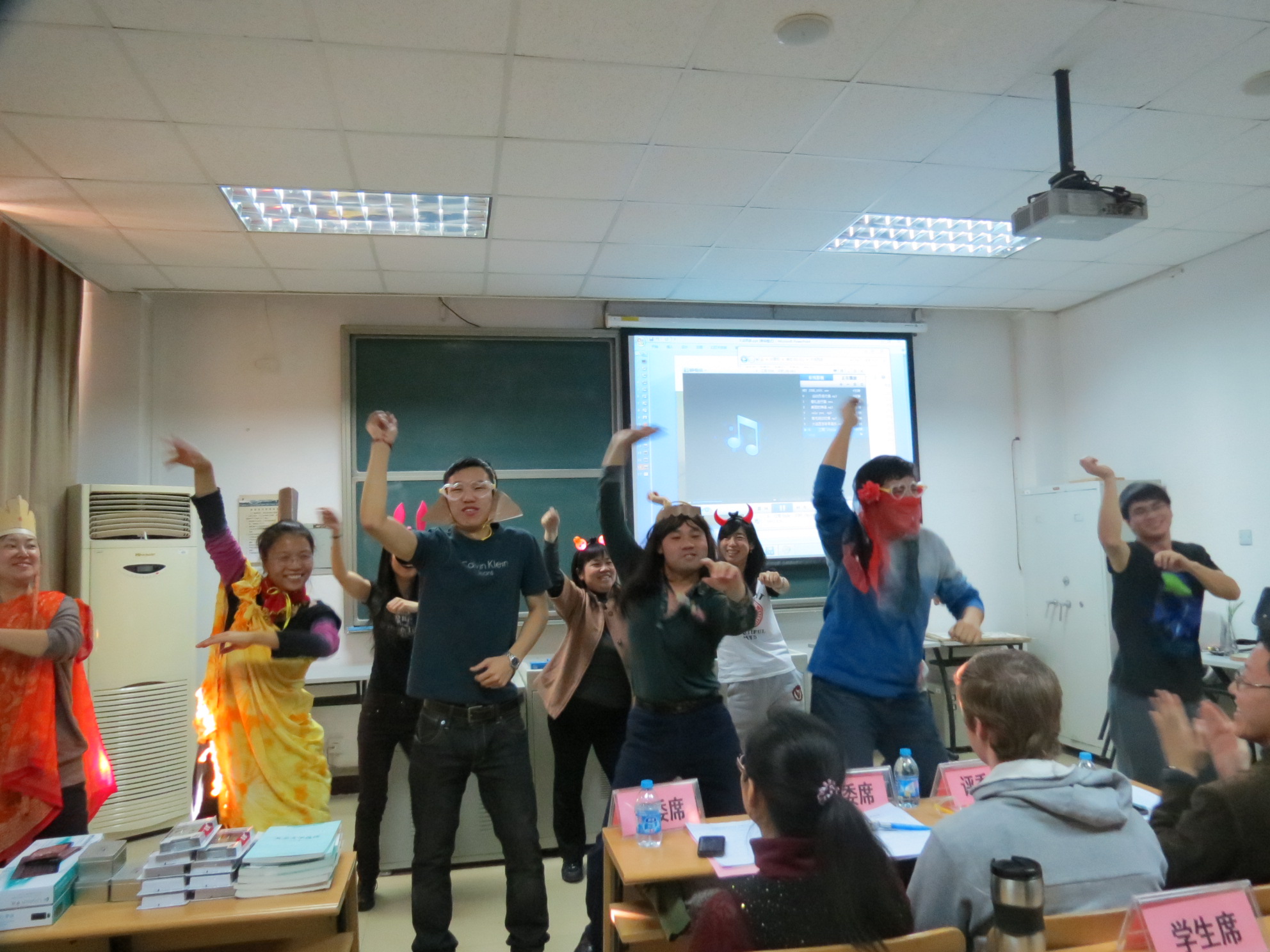 伴随着两位主持人热情奔放、准确流利的开场词,比赛于下午2点正式开始。比赛共分为四部分内容:1.英文短剧表演2.英语歌曲演唱3.美文朗诵4,英语演讲。参赛节目别出心裁,精心准备,表现出独特新颖的英语运用才能。其中中高级班的《Big Words of Western Tour》在服装、编排、背景MV等方面尤其出色;英文歌曲《Hey Jude》演唱弹奏赢得在场同学们的多次热烈鼓掌;穿插游戏《绘图猜单词》的4个小组同学呈现给大家多副精彩生动的黑板画。评委在节目进行半场后,分别给予点评。在各项节目表演结束之际,全体同学共同演唱了一首《朋友》在温馨欢快的气氛中画上了此次比赛的句号。