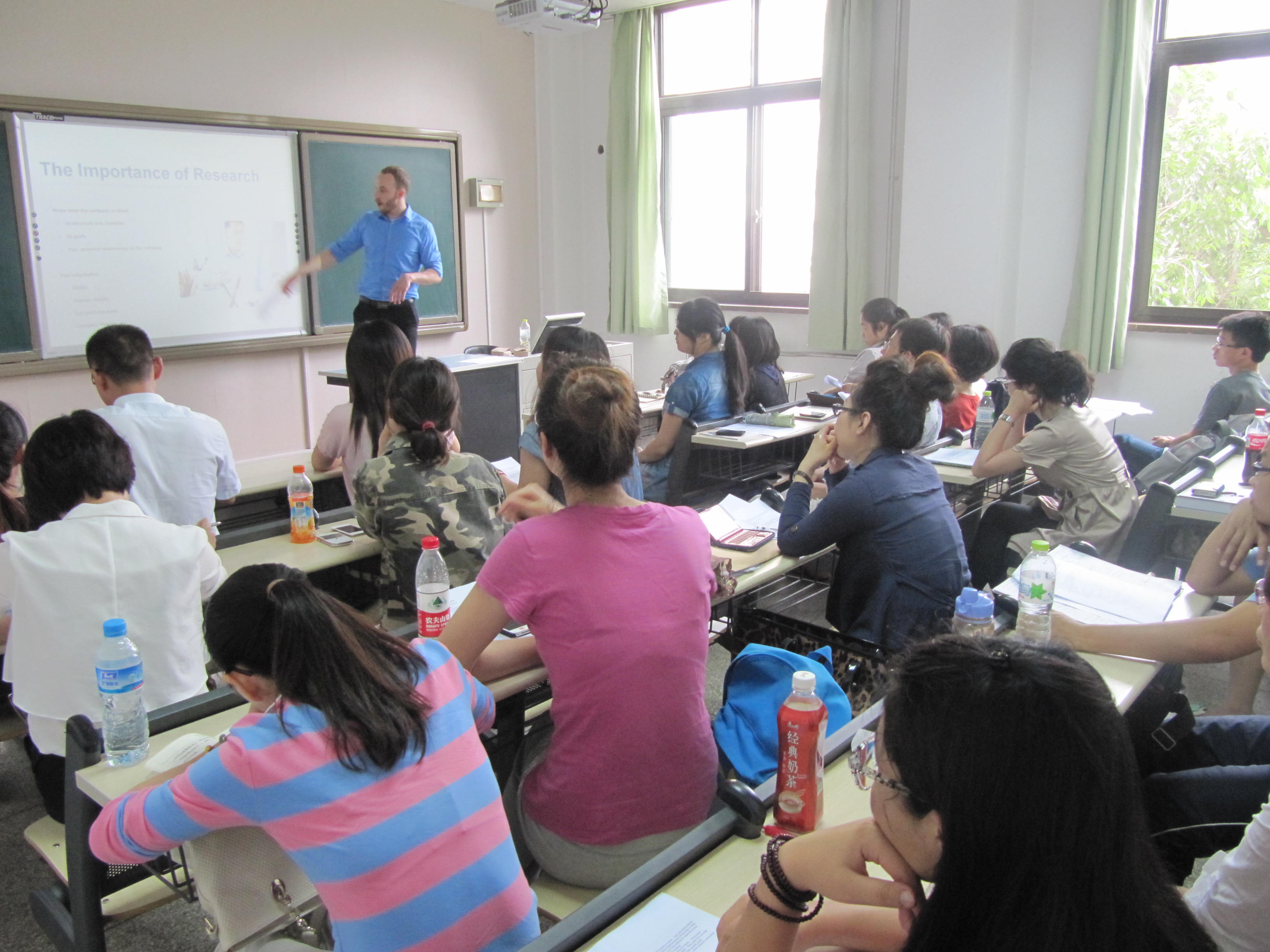 2013年5月26日下午2点,北京语言大学培训部公益系列讲座第十讲“求职面试英语”在北京语言大学主楼北侧448教室成功举办。本次讲座旨在帮助学员们提高英语面试的能力、掌握基本英语面试技巧。美籍外教Stephen P. Davis特邀担任本次讲座主讲老师,来自我部业余外教口语学习班的学员以及不同院系的近40名学生认真听取了本次讲座。