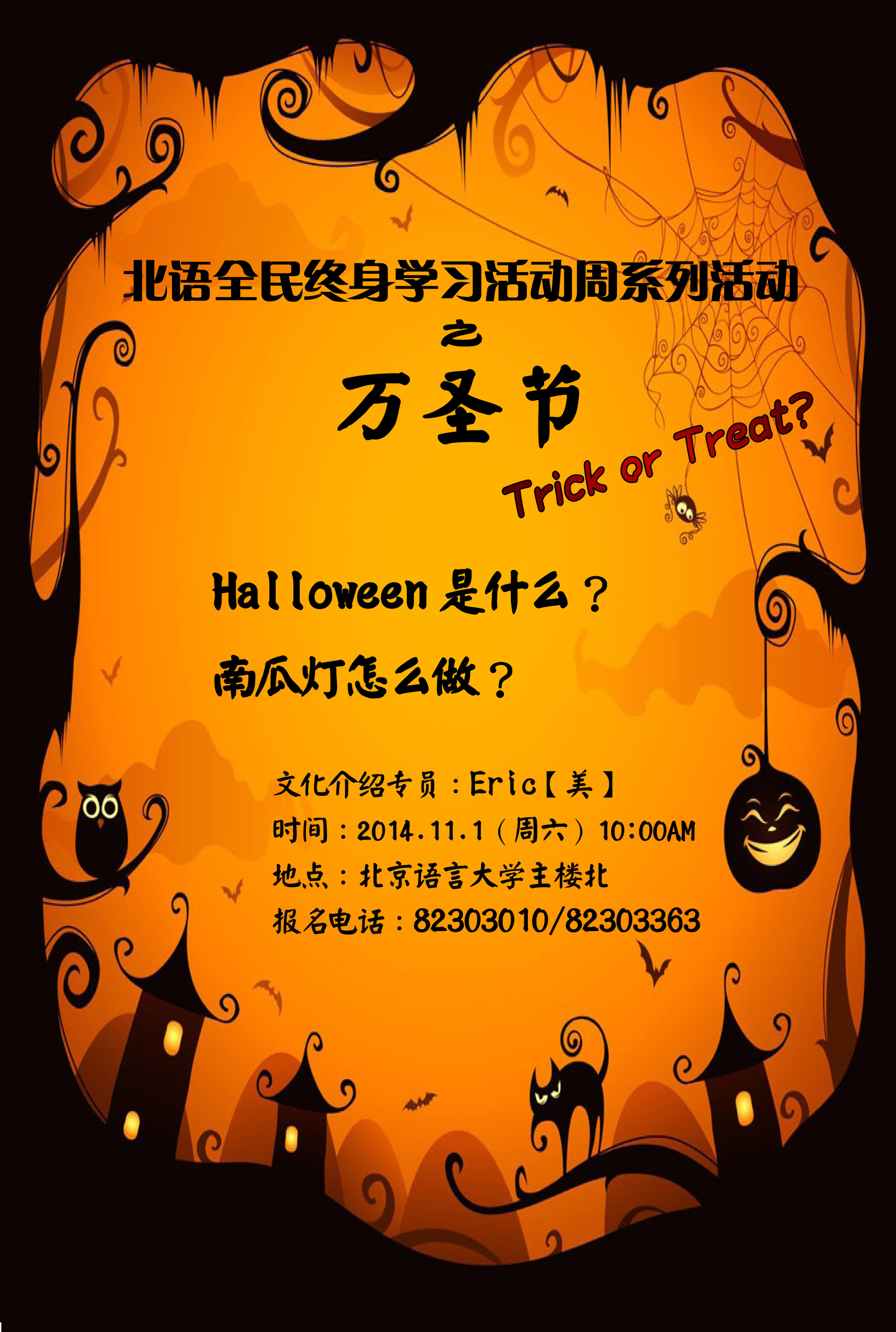 北语全民终身学习活动周系列活动之(二)外教陪你过万圣节