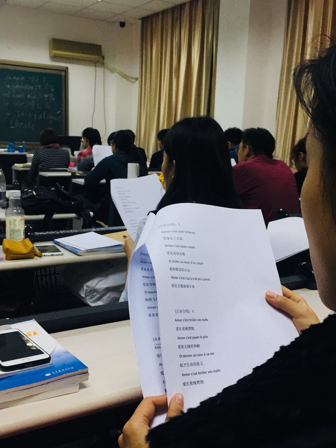 同学们在Charles老师的带领下,一起演唱了法语歌曲“Aimer”(爱),这首歌来自于音乐剧《Romeo et Juliette》(罗密欧和朱丽叶)。