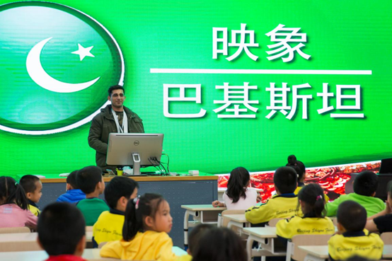 3月25日下午,北语高支附项目组面向石油附小一、二、三年级的100多名同学,开展了一场热闹、有趣的“一带一路沿线国家文化讲座”。作为系列讲座的第一篇,我们邀请到了来自巴基斯坦的外籍专家纳飞斯老师,纳飞斯老师从巴基斯坦的地理、人文、饮食、体育、经济、政治多个维度,用生动的语言和故事型的叙事方式,在一堂课的时间里,带着学生们游历了文明古国巴基斯坦。讲座期间孩子们通过和外教的互动、在图册上填色识图、连线问答等多种方式加深巩固了当堂所学的知识,认识了我们的友好邻国——巴基斯坦。这种寓教于乐的授课方式受到了学生们的喜爱。