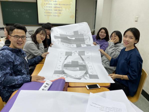 最后一个“猜题游戏” (스피드게임 ),中韩同学需要积极地应用所学语言,解释题目猜出答案。通过这个环节,大家学到了“댓글”(回帖、评论)、 “웹툰” ( 网页动漫) 等实用性很强的词汇。