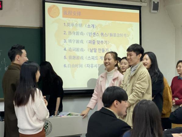 10月26日上午北京语言大学培训学院举办第八届中韩学生交流会。本次交流会由我院资深韩语外教姜至恩老师主持,外教金松姬、中教曹琳老师共同组织,共有18名韩语中高级班同学,14名韩国留学生参加。