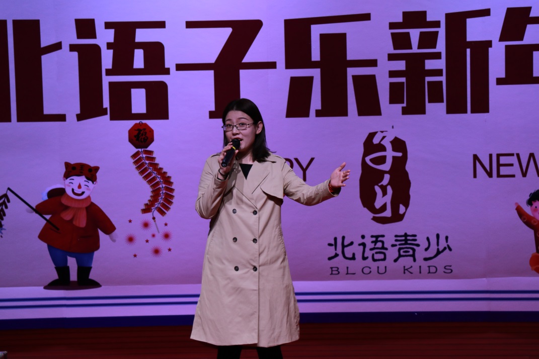 比赛中场,北语子乐青少外教Rasha、中教娜扎、魏梦桐与王朝晖老师带来了英语、法语、德语和日语四个语种版本的Let it Go。张鑫老师带来了欢快的朝鲜族民歌《长鼓敲起来》,专业的演唱将整场晚会推向高潮。张老师毕业于中国音乐学院。现兼任中国赛事网艺术总监,其指导的学生多次获得国际、国内钢琴声乐大奖。最后,孙亚鹏副院长代表北语子乐青少发言,他表示:孩子们的表现都非常棒,无论得奖与否,每一个孩子都是今晚舞台上最闪耀的星。近两年,我们承接了北京市教委高支附项目,针对石油附小、石油附中、实验三小等学校的多语种教学工作,也是基于对我院在青少教学方面的肯定而开展的。我院子乐青少项目将继续深化教研、优化教学,为周边中小学及来到北语子乐青少学习的孩子提供更好的课堂教学和服务。