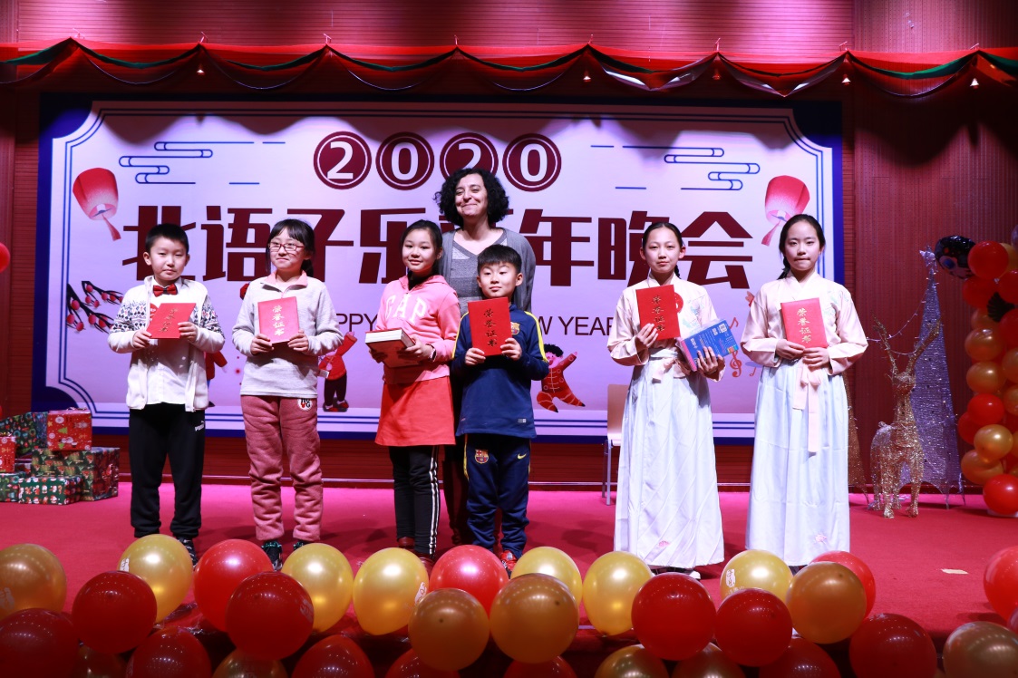 比赛的最后,根据选手的综合表现,评委们评选出一等奖1名,二等奖2名,三等奖3名和最佳发音、最佳舞台表现、最具创意舞台等5个单项奖。由北语子乐青少外教Rasha老师和北语培训学院孙亚鹏副院长为选手们颁奖。
