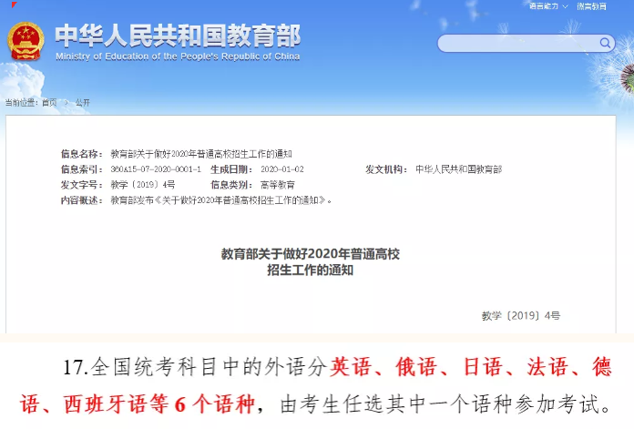 近日教育部公布了最新的普通高中课程方案,新修订的方案有两个方面做出了重大的改变,其中有一条就是:调整外语规划语种,外语不再局限于英语。