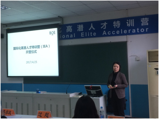 2017年4月25日,京东方国际化高潜人才特训营(IEA)开营仪式在北京语言大学主楼北344教室顺利举行。21名从集团竞聘和部门推荐的IEA学员由此开启了为期3个月的特训。