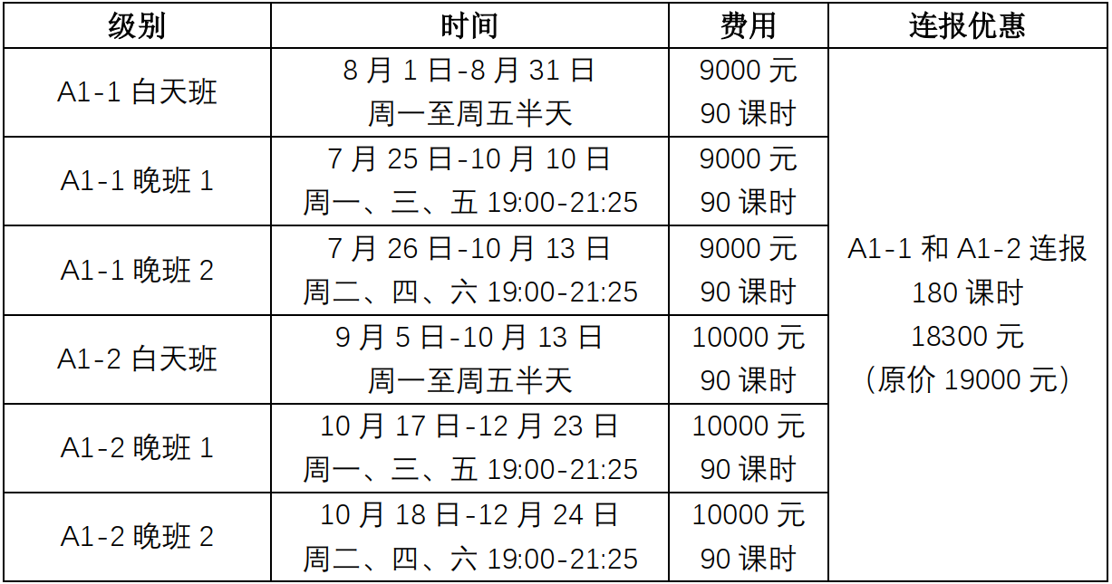 零起点A1班,适合零基础学员。