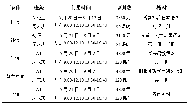 ☆ 五年内小语种老生重读同一语种、同一级别,只需半价。