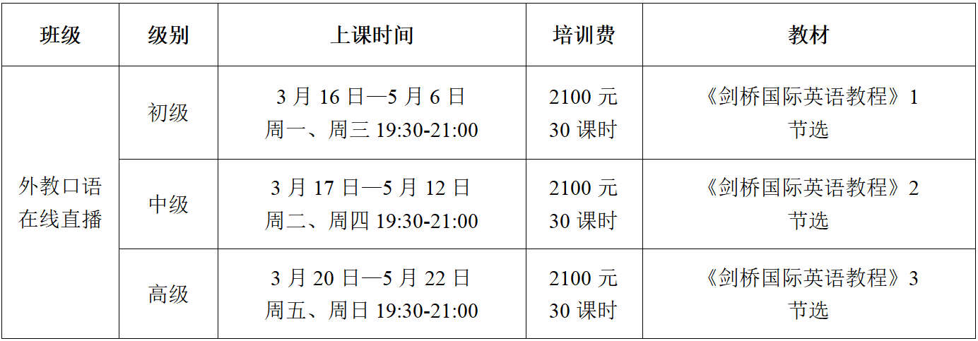 适合学员:词汇量在3500左右,能就一话题与外国人对话5-10分钟有计划出国留学工作的学员;从事外事或翻译工作的人员;英语爱好者等。