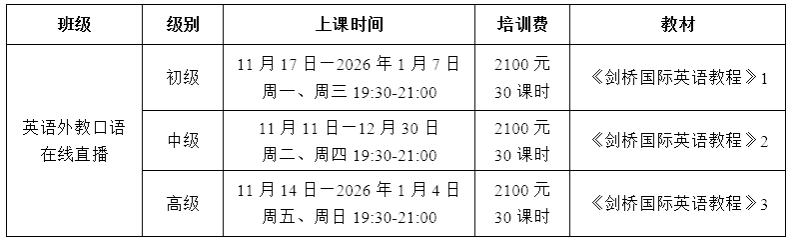 英语外教口语在线二期班(招生中)