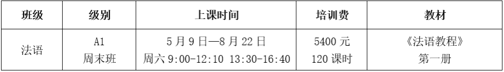 适合学员:零基础。对法语及其文化感兴趣,希望通过学习法语提高个人综合竞争力或有计划出国学习、旅游和工作的学员。欲参加DELF-DALF、TEF/TCF考试的学员。