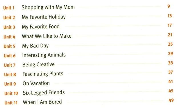 118个操练句型,653个主题单词/词组,至少20个演讲题材。本级别涉及的主题话题有购物,食物,自己喜爱的节日、糟糕的日子,做手工,做导游,做家务,濒危动物,健康的生活方式,礼貌用语等。涉及的语言功能有描述手工制作及乐趣,描述事情的顺序及因果,值得参观某地的表达,表达通常做的事等。
