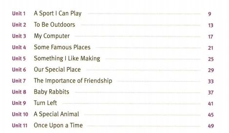 125个操练句型,668个主题词汇单词/词组,至少20个演讲题材。本级别涉及的主题话题有动物,指路,环保,亲戚,赚零花钱,娱乐活动,风景名胜,田间旅行,运动目等。涉及的语言功能有表达必须和不能,说明原因,举例说明,完整讲述过去的事,表述将要做某事,对过去做过的事,有计划的将来要做的事,已经完成的事表达,对假设的事情的表达等。