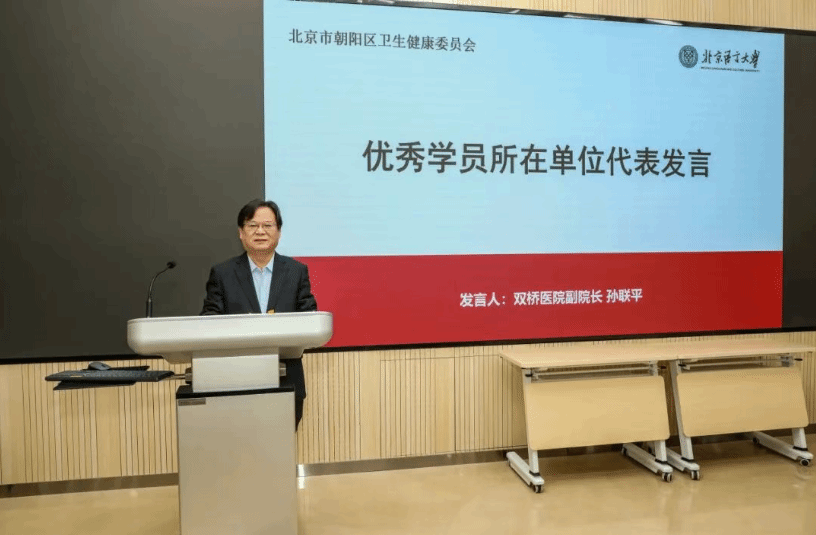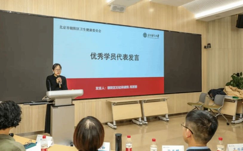 朝阳区妇幼保健院高丽丽医师作为优秀学员代表、朝阳区双桥医院孙联平副院长作为优秀组织单位代表分别发言,表示将积极支持英语培训工作,做好朝阳区卫生健康国际化服务。