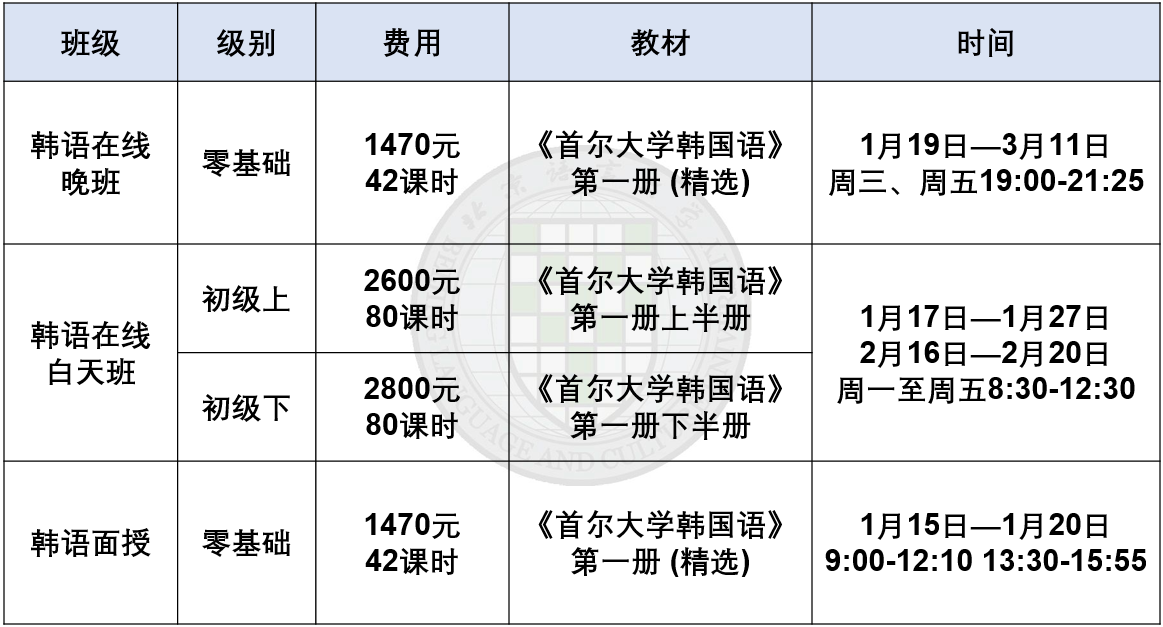 适合学员:零基础。对韩语及其文化感兴趣,希望通过学习韩语提高个人综合竞争力或有计划出国学习、旅游和工作的学员。