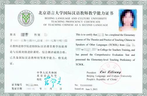 我校将为通过培训考核的学员颁发“北京语言大学国际汉语教师教学能力证书”,以证明其具备我校承认的“国际汉语教师初/中等教学能力”。